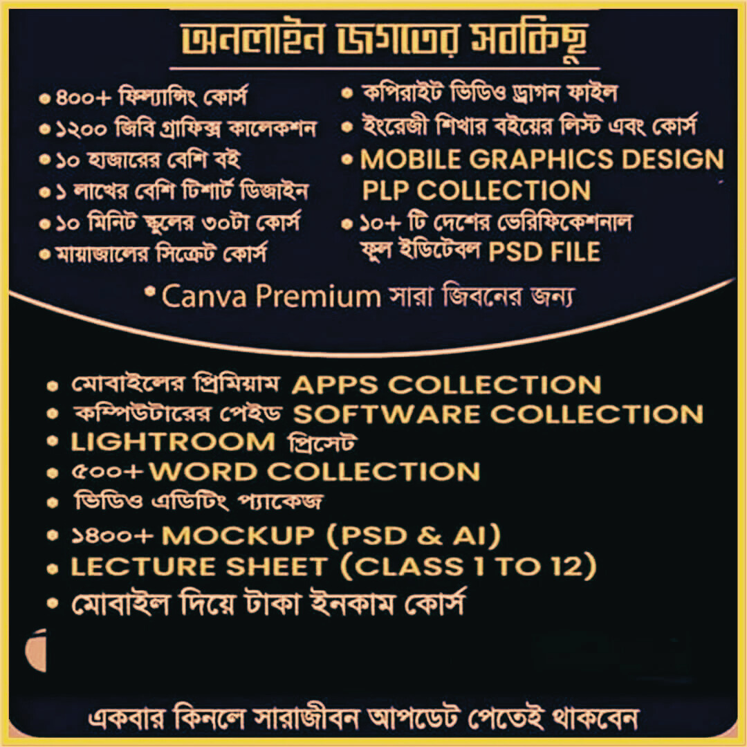 এই প্যাকেজে আপনি পাবেন অনলাইন জগৎ সম্পর্কিত সবকিছু, যা আপনার কাজকে সহজ এবং আরও লাভজনক করবে। এতে অন্তর্ভুক্ত রয়েছে: