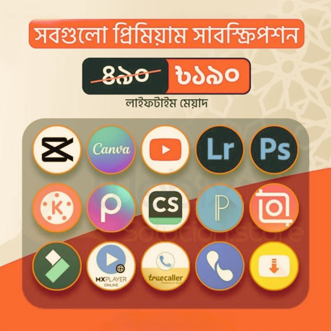 🔥 মাত্র ৳১৯০ টাকায় (সাধারণ মূল্য ৳৪৯০) পাচ্ছেন নিচের জনপ্রিয় অ্যাপগুলোর লাইফটাইম প্রিমিয়াম সাবস্ক্রিপশন একসাথে এক প্যাকেজে: